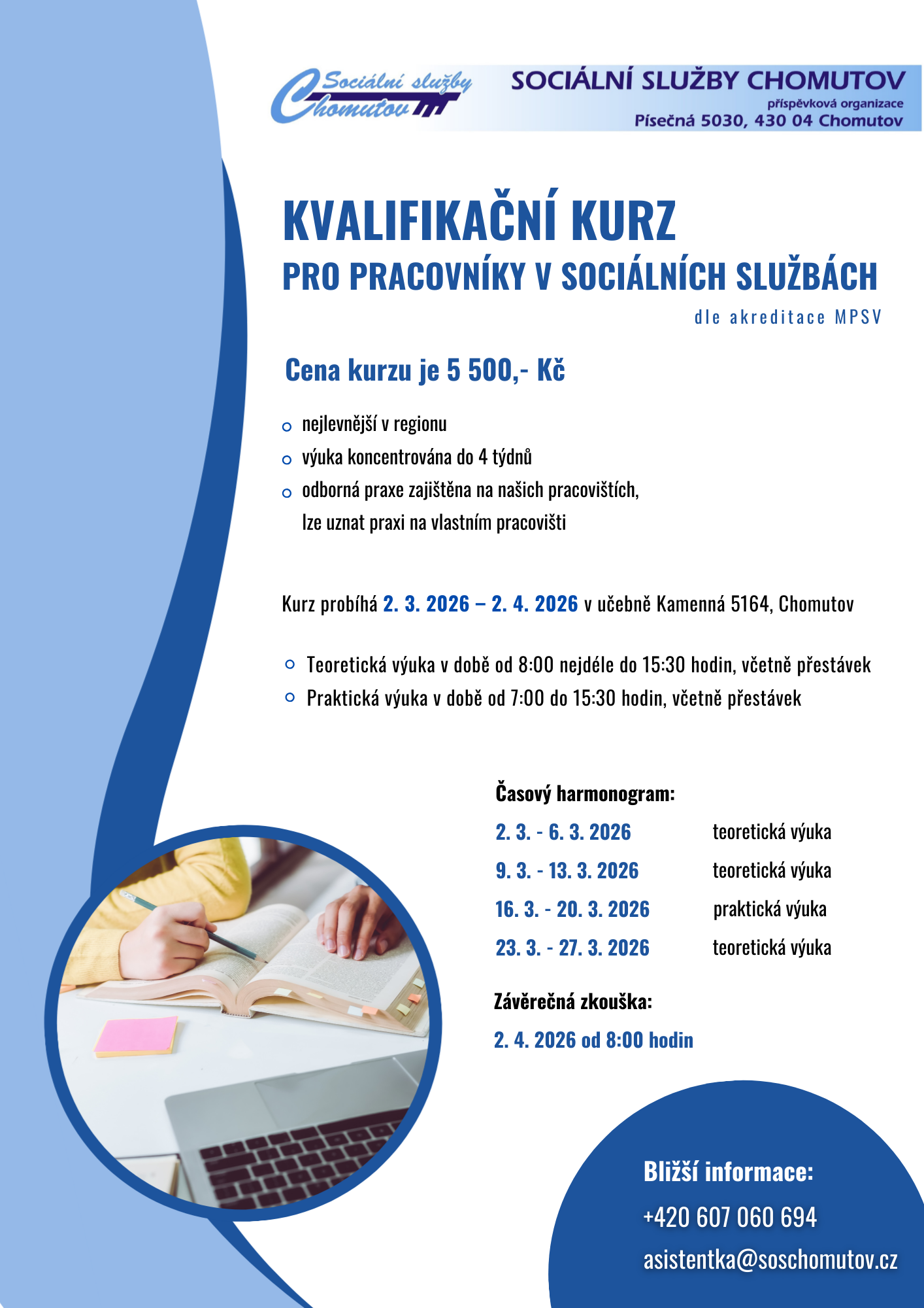 KVALIFIKAČNÍ KURZ PRO PRACOVNÍKY V SOCIÁLNÍCH SLUŽBÁCH.Více informací a přihláška ZDE.
